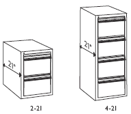 The filing cabinets are available in three depths - 21", 25" and 31" - and a choice of 2, 3 or 4 drawers in the 31" depth, 2 or 4 drawers in depths 21" and 25".